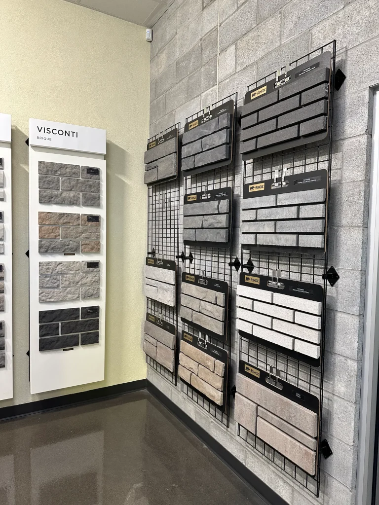 La salle d’exposition « Création Webster» offre un environnement inspirant où comparer les textures, couleurs et dimensions de nos différentes briques et pierres. Cet espace, réservé aux architectes, permet de créer des combinaisons uniques avec l’aide de nos conseillers.